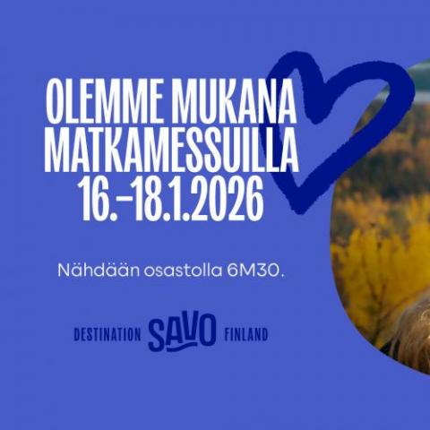 Pohjoismaiden suurin matkailualan tapahtuma, Matkamessut 2026, järjestetään Helsingin Messukeskuksessa 15.–18. tammikuuta. Tänä vuonna koko Pohjois-Savo on vahvasti esillä yhteisellä Destination Savo -osastolla, joka kokoaa alueen matkailutoimijat saman katon alle ja esittelee Savon sydämen elämyksiä kotimaisille ja kansainvälisille messuvieraille.